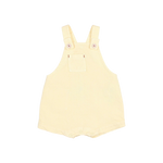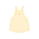 Short twill dungaree. Contrast stitching and piping details. Two-position straps with button at the front and fastened at the back. Plastron-style pocket on the chest. Decorative label and pocket on the back. Press studs at the crotch for easy dressing.