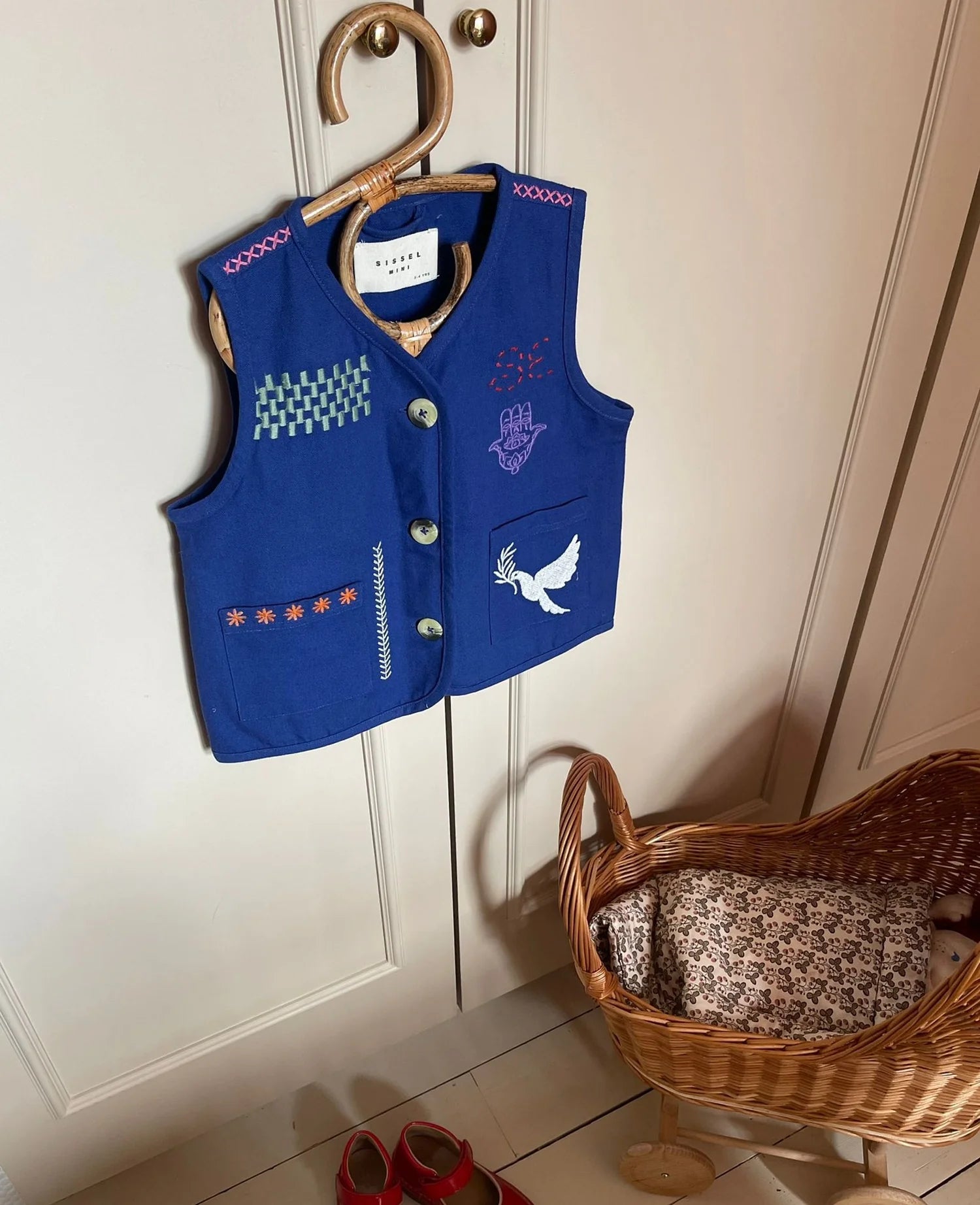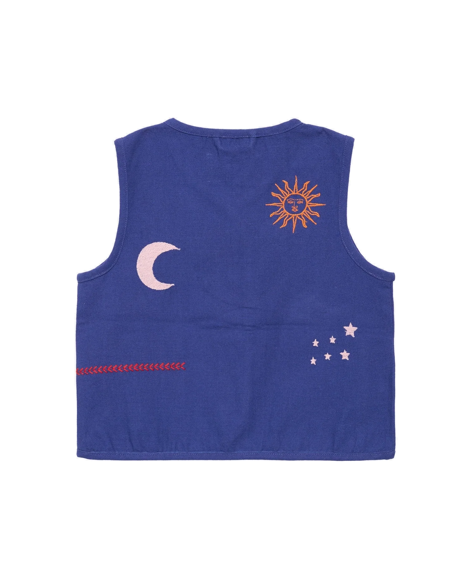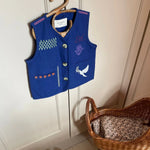 Prachtig mouwloos vestje met geborduurde tekeningen.