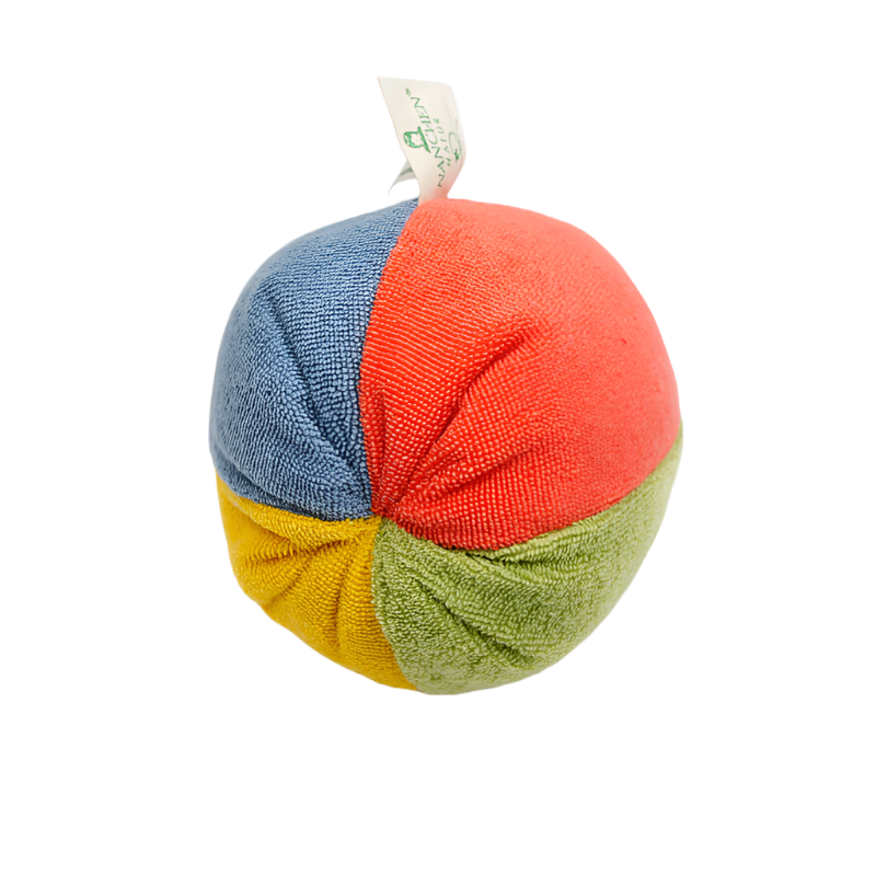 Frottee 100% organic cotton bal met rammelaar.